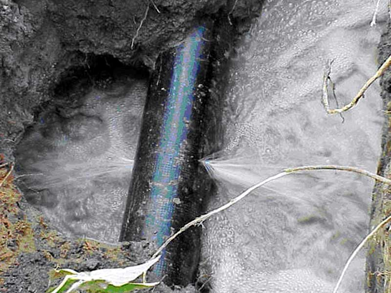 We use sensitive microphones to hear the high-frequency hiss of pressurized water escaping from a pipe underground.